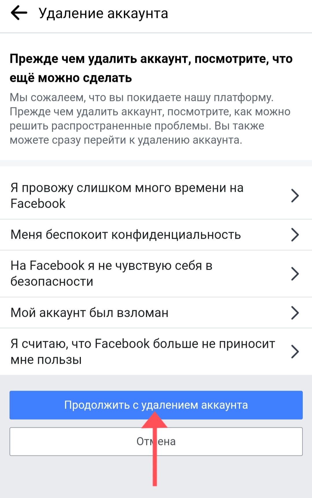 Если вам абсолютно надоела платформа и вы хотите полностью удалить Facebook из своей жизни, процесс не сильно отличается.