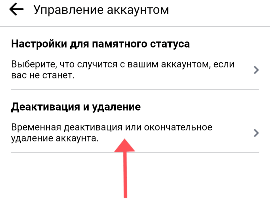 - В раскрывающемся меню выберите «Деактивировать или удалить свою учетную запись».