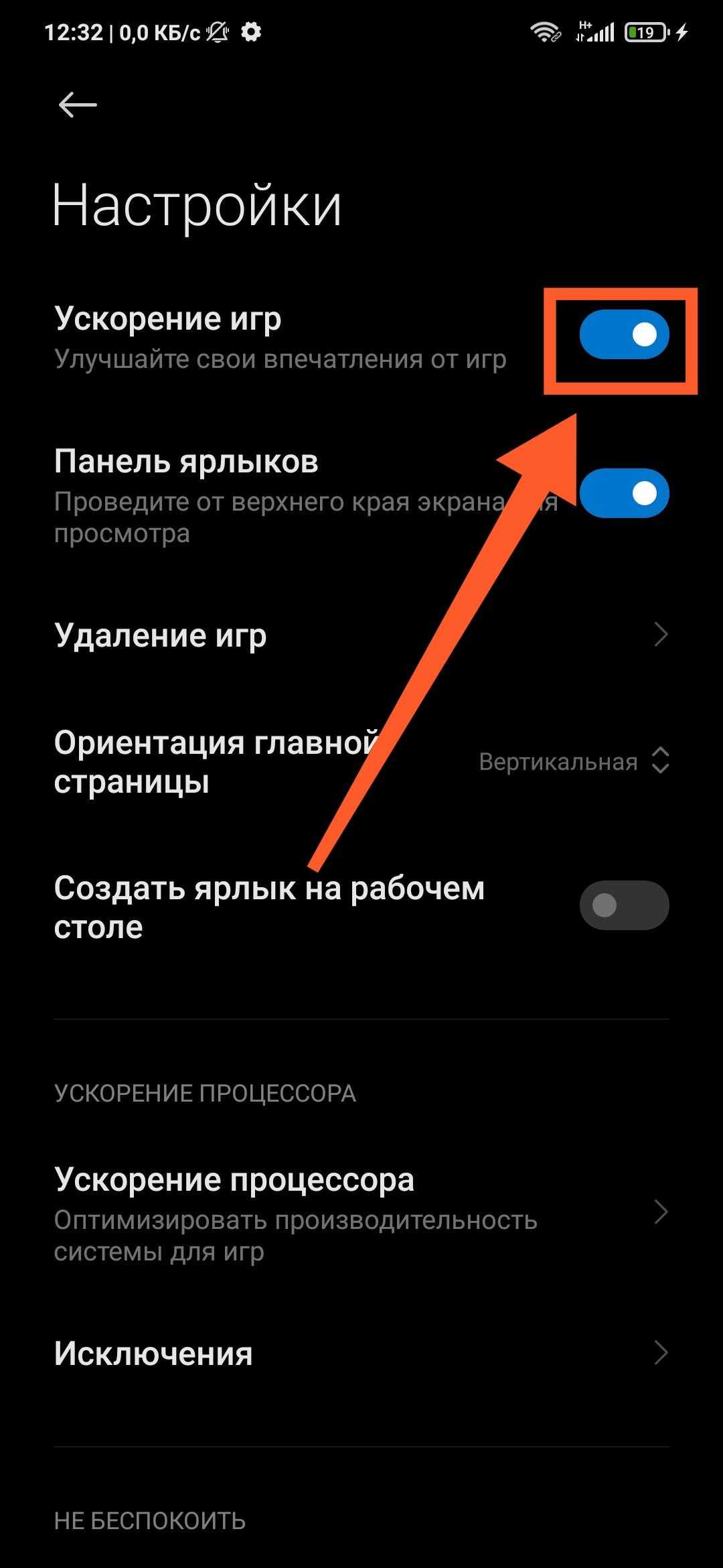 Шаг 3. Активируйте бегунок Ускорение игр.