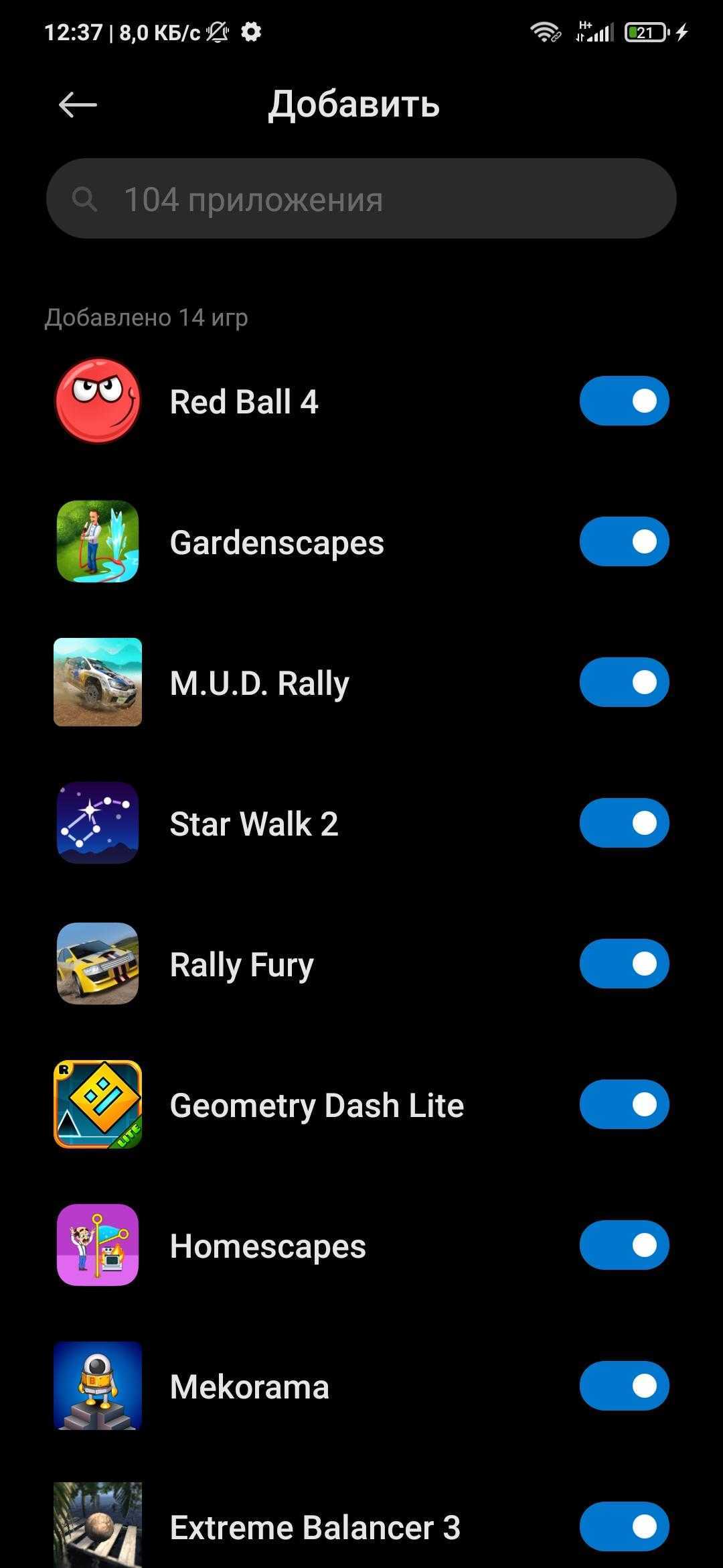 Шаг 10. Передвиньте бегунок в положение Включено для тех игр, которые не были добавлены автоматически.