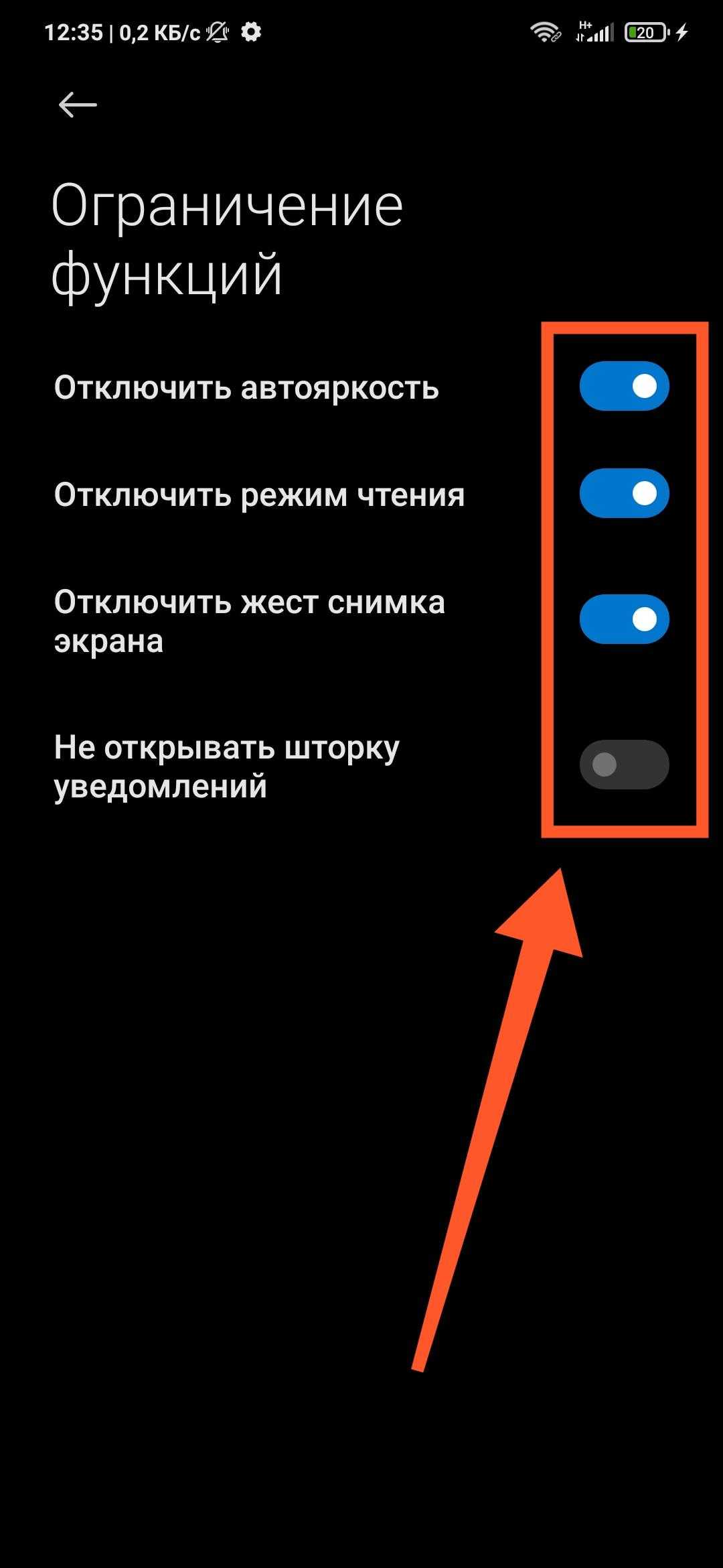 Шаг 8. Отключите функции телефона, которые могут вам мешать, например решим чтения, автояркость и шторку уведомлений.