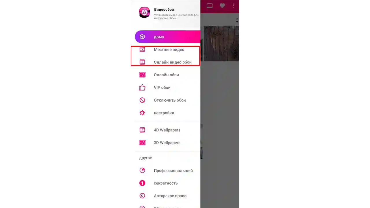 - Выбрать в списке пункт «Обои», а затем «Живые обои».