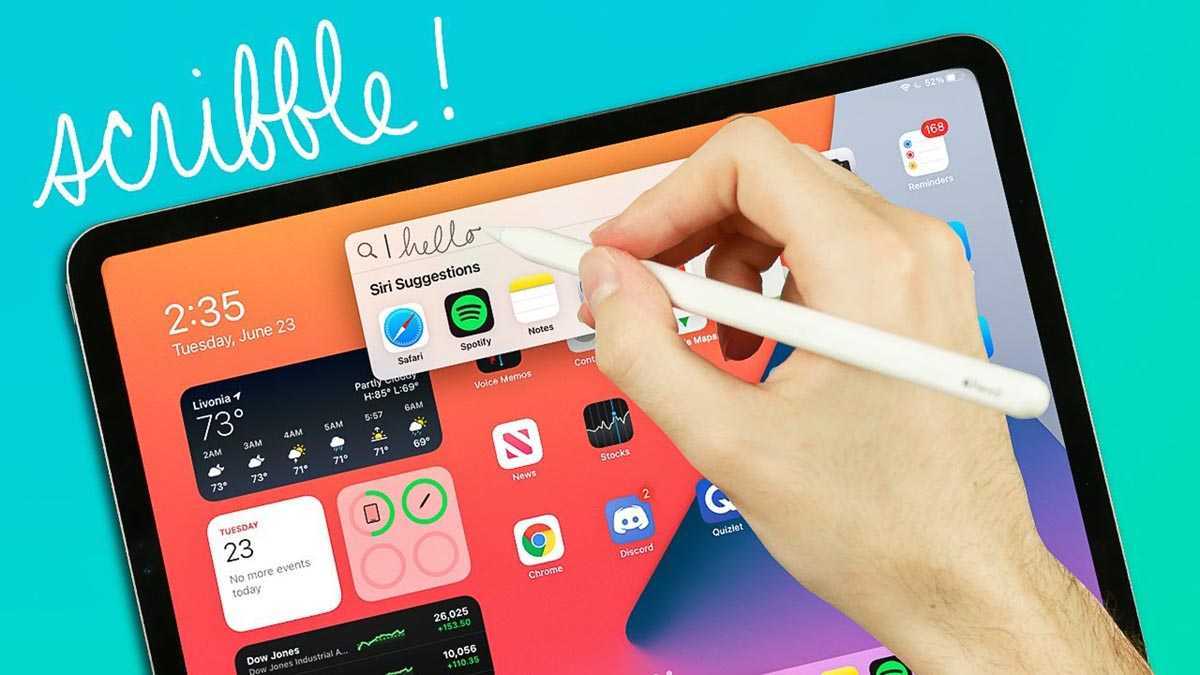 В iPadOS была добавлена функция распознавания рукописного ввода под названием Scribble (с англ. “каракули”). Это не просто реализация распознавания письма в рамках определенного приложения. Опция работает на уровне системы и поддерживается большинством стандартных и некоторыми сторонними приложениями.