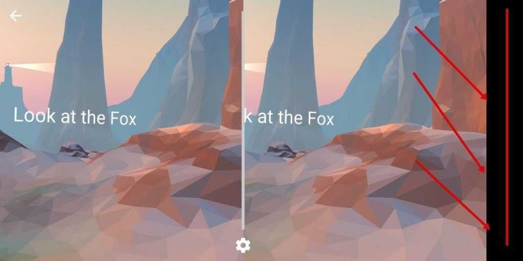 Приложение Cardboard в полноэкранном режиме на экране с соотношением 18 к 9
