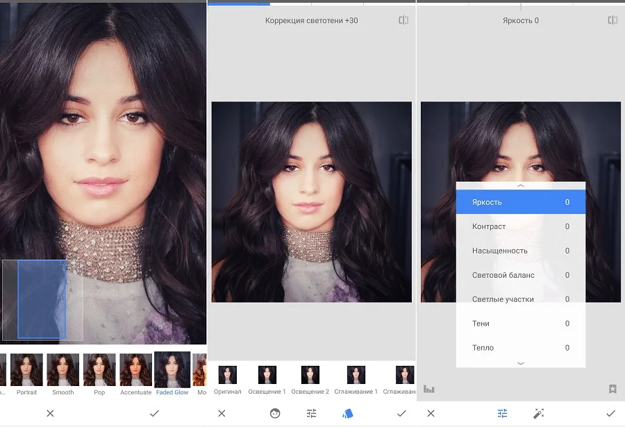 Основные шаги работы с Snapseed: