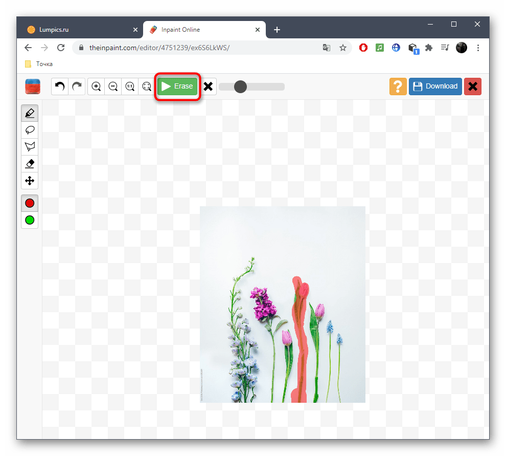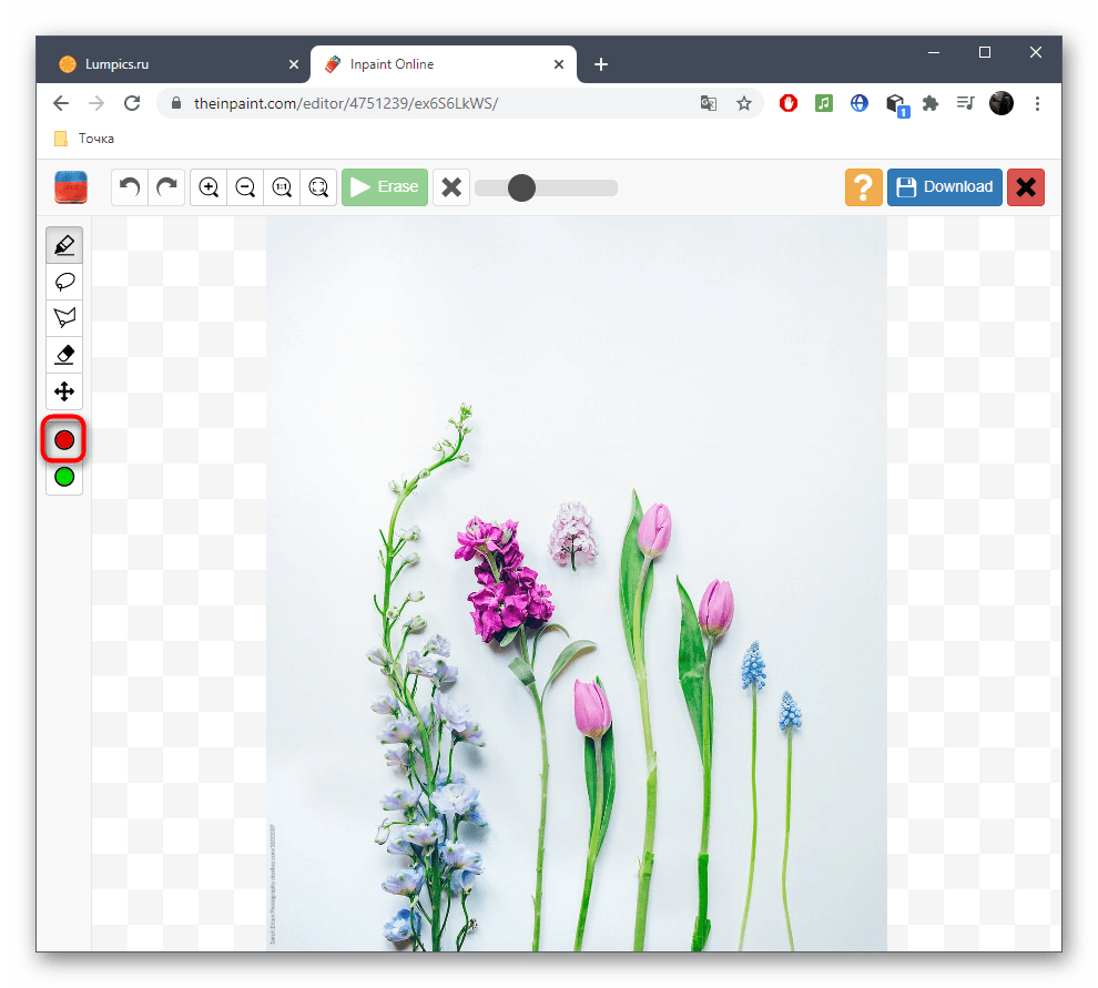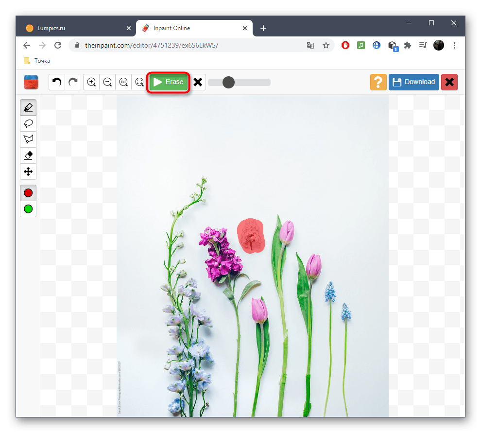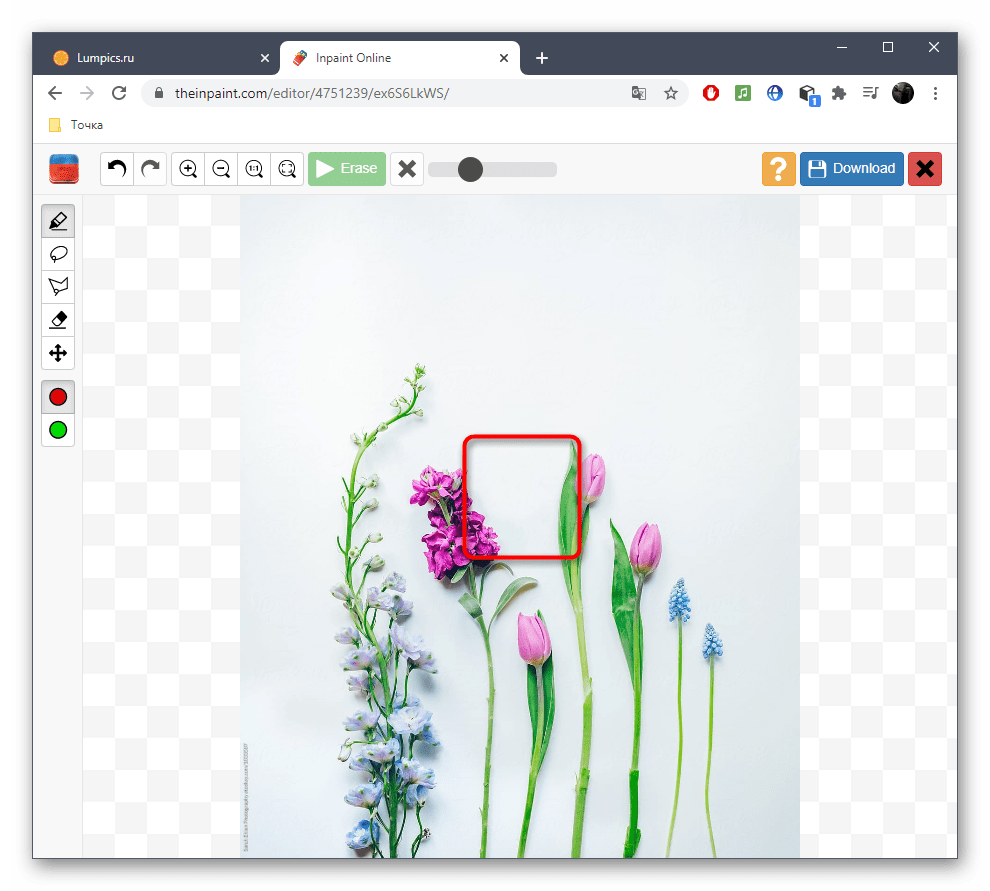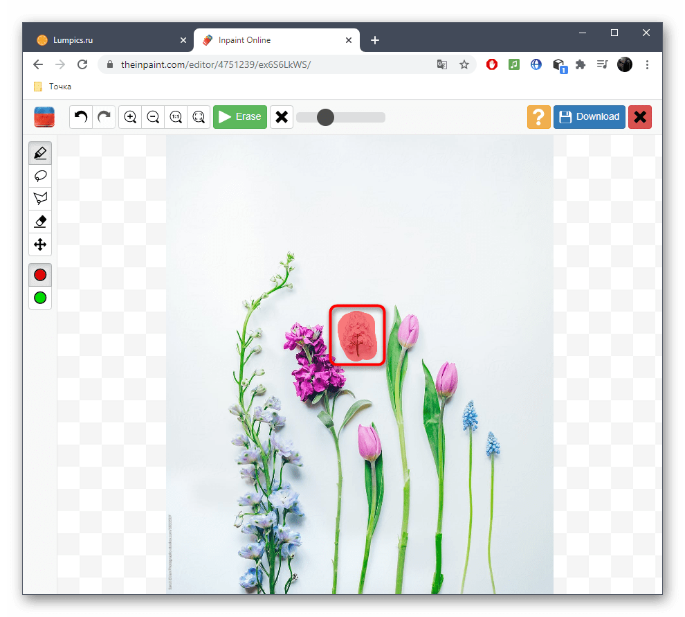 - Используйте инструмент под названием лассо или кисть, чтобы выбрать объект, который вы хотите удалить.