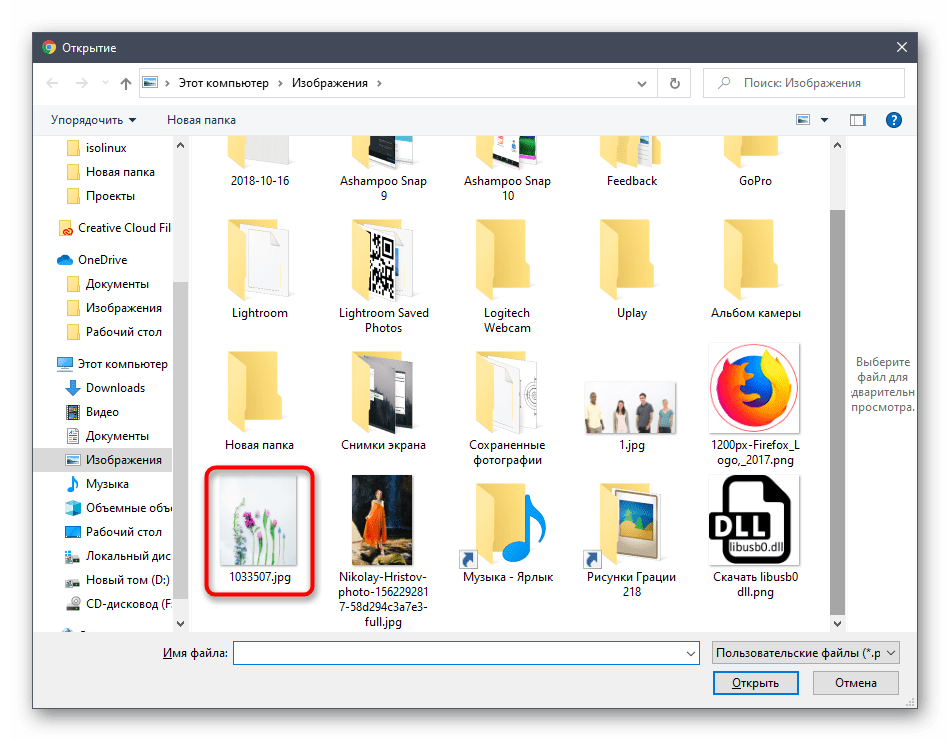 Находим изображение на компьютере и щелкаем Открыть