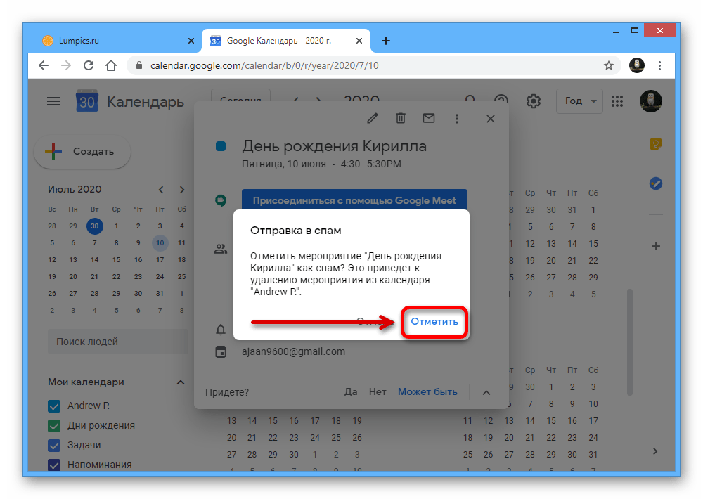 Как видно, метод требует минимум действий, по большей части представляя собой альтернативу обычному удалению. С другой стороны, отметка мероприятия в качестве спама вполне может повлечь за собой блокировку отправителя.