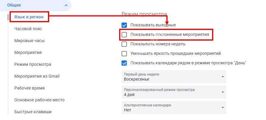 - Снимите галочку с параметра «Показывать отклоненные мероприятия»;