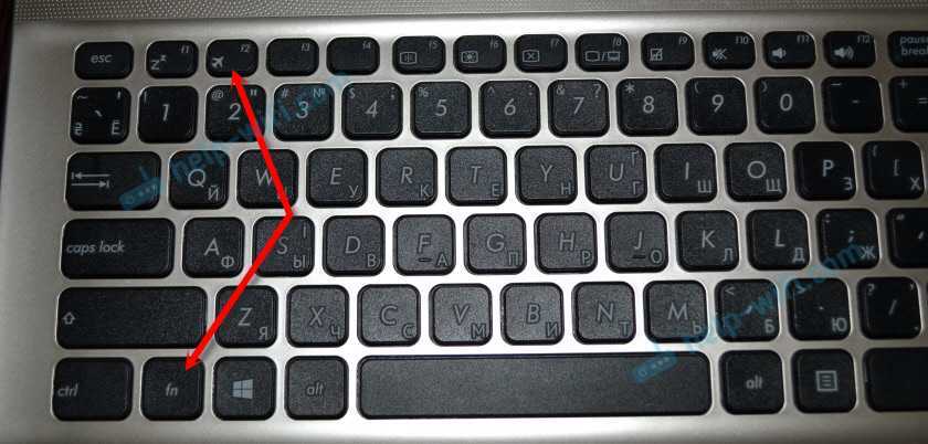 На ноутбуке ASUS, это клавиши FN + F2. На функциональной клавише должна быть иконка. Обычно она в виде беспроводной сети. А на новых моделях ноутбуков иконка уже в виде самолета.