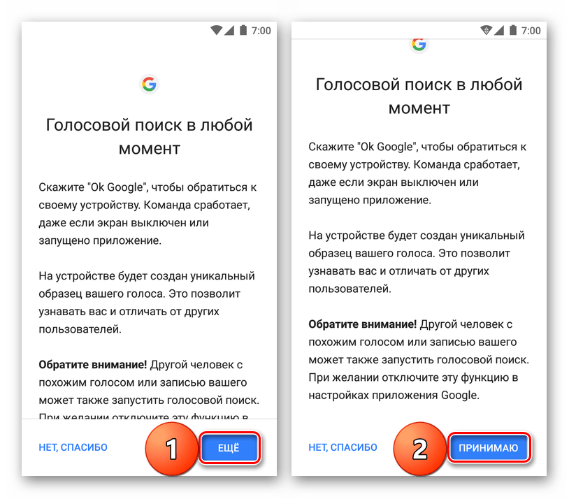 Голосовое управление на Android-смартфонах осуществляется при помощи функции «ОК, Google», которая активно рекламируется в интернете и на ТВ. После первого запуска гаджета система сразу предлагает пользователю настроить распознавание речи.