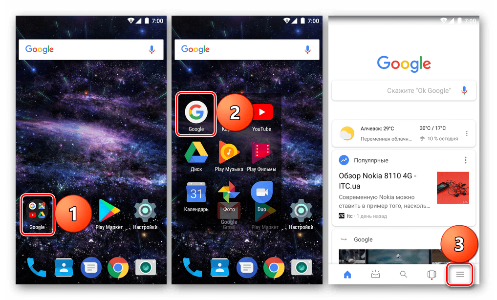 Первым делом нужно будет включить работу помощника «ОКей Гугл». Для этого нужно, чтобы на вашем телефоне было установлено официальное приложение «Google». В Android обычно но уже имеется по умолчанию вместе с другим пакетом приложений от Гугла — Почтой, Фото, YouTube, Play Market и т.д.