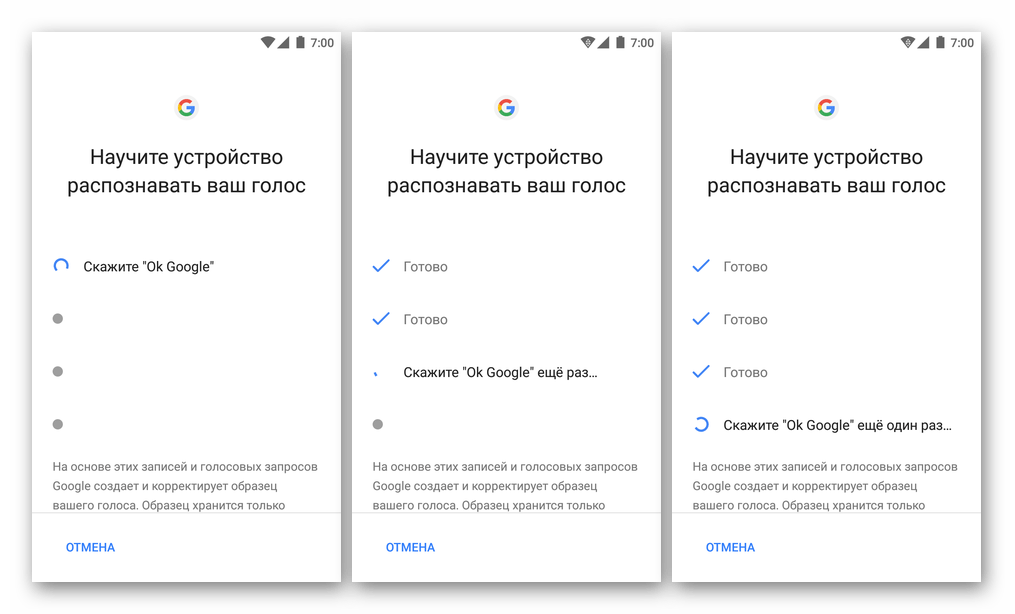 И несколько раз произносим фразу «Окей Гугл» для сохранения звука вашего голоса в память. Чтобы помощник отзывался только на вас, и ни на кого другого (в отличие от Алисы, кстати)
