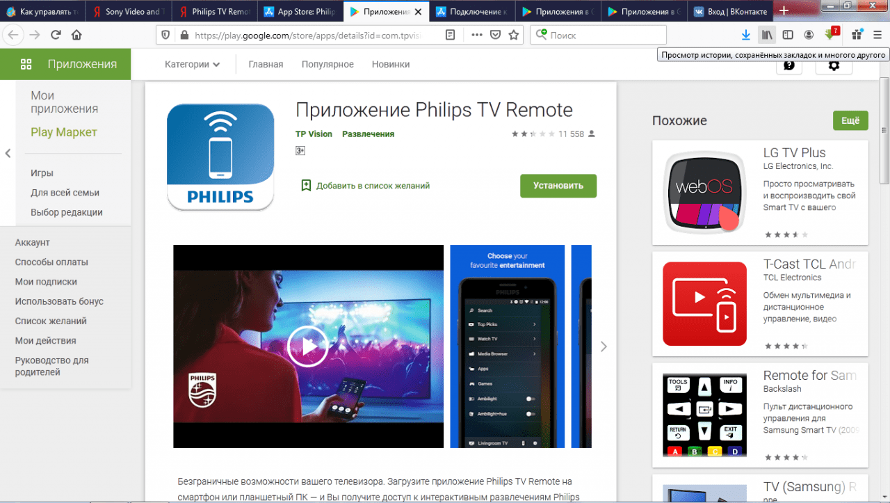 Универсальное приложение для управления телевизором доступно в Play Market