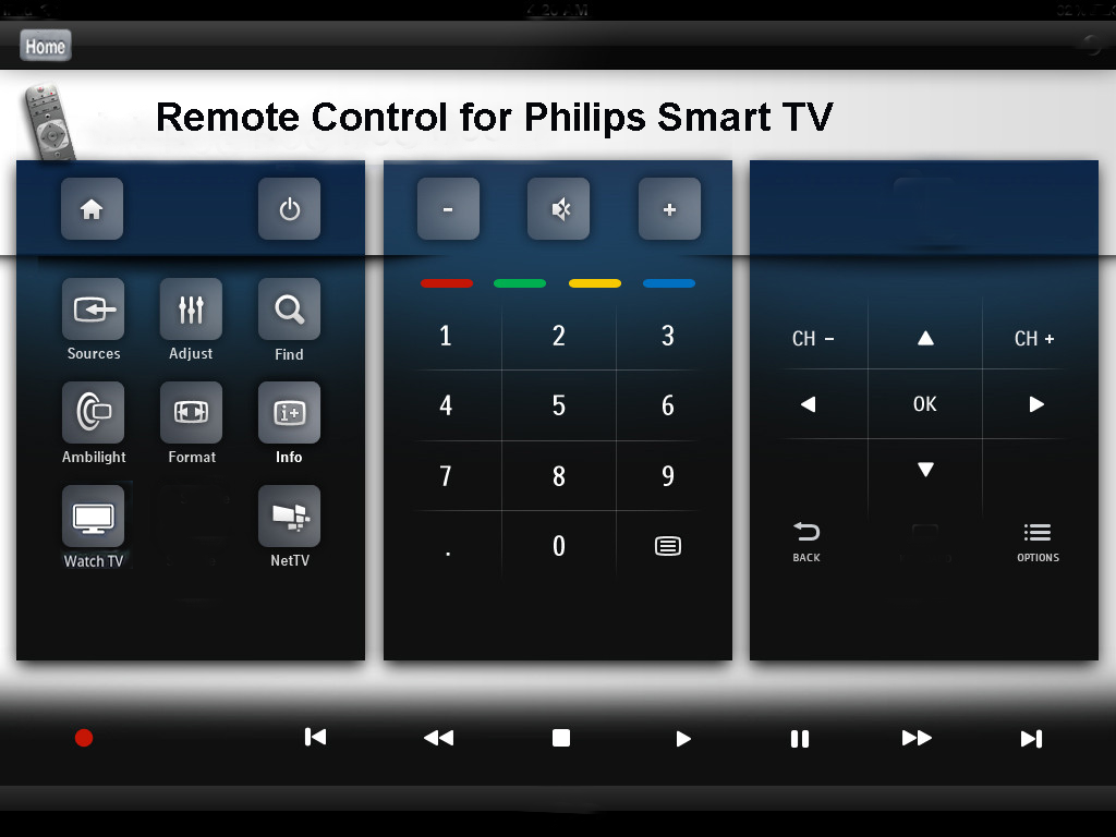 Универсальный софт, позволяющий управлять телевизионным оборудованием с помощью смартфона. Приложение не имеет русскоязычной версии, но интуитивно понятный и простой интерфейс полностью компенсирует этот изъян. Поэтому с функционалом главного меню совладает каждый пользователь.