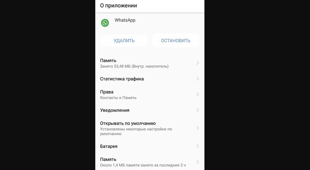 Для этого сначала нужно зайти в «Настройки» — «Приложения». Кликнуть по конкретной программе, чтобы проверить, сколько RAM она использует. Если занимает слишком много места, стоит принудительно остановить его. Нажать «Остановить» (Force Stop) и подтвердить свое действие.