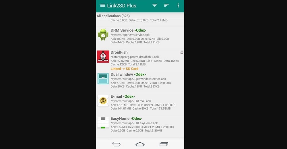 Подготовленный таким образом MicroSD-накопитель возвращаем обратно в устройство и устанавливаем из Google Play утилиту Link2SD. После установки вы увидите сообщение о том, что отныне эта утилита добавлена в автозагрузку. Запустив её, можно будет увидеть список установленных приложений. Tap по любому из них вызовет всплывающее окно с подробной информацией, где можно при помощи галочек отметить, какие части приложения вы хотите переместить на карту памяти (само приложение, его кэш, библиотеки).