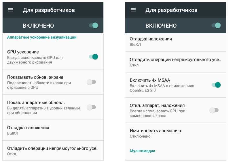 Далее в разделе настроек «Для разработчиков» идут тематические подразделы, о которых мы поговорим отдельно. Там тоже есть много всего интересного.