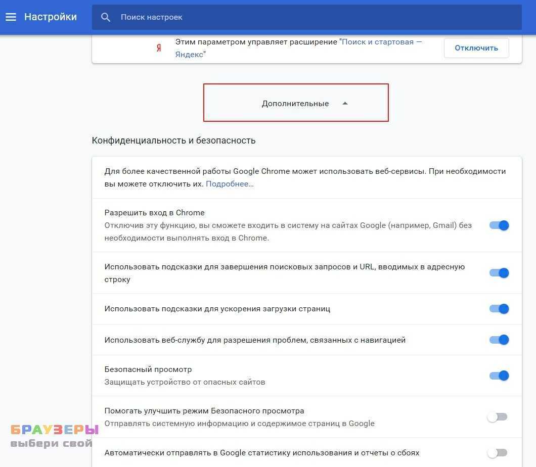 В браузере Хром есть сразу несколько пунктов, подробно рассмотрим каждый из них: