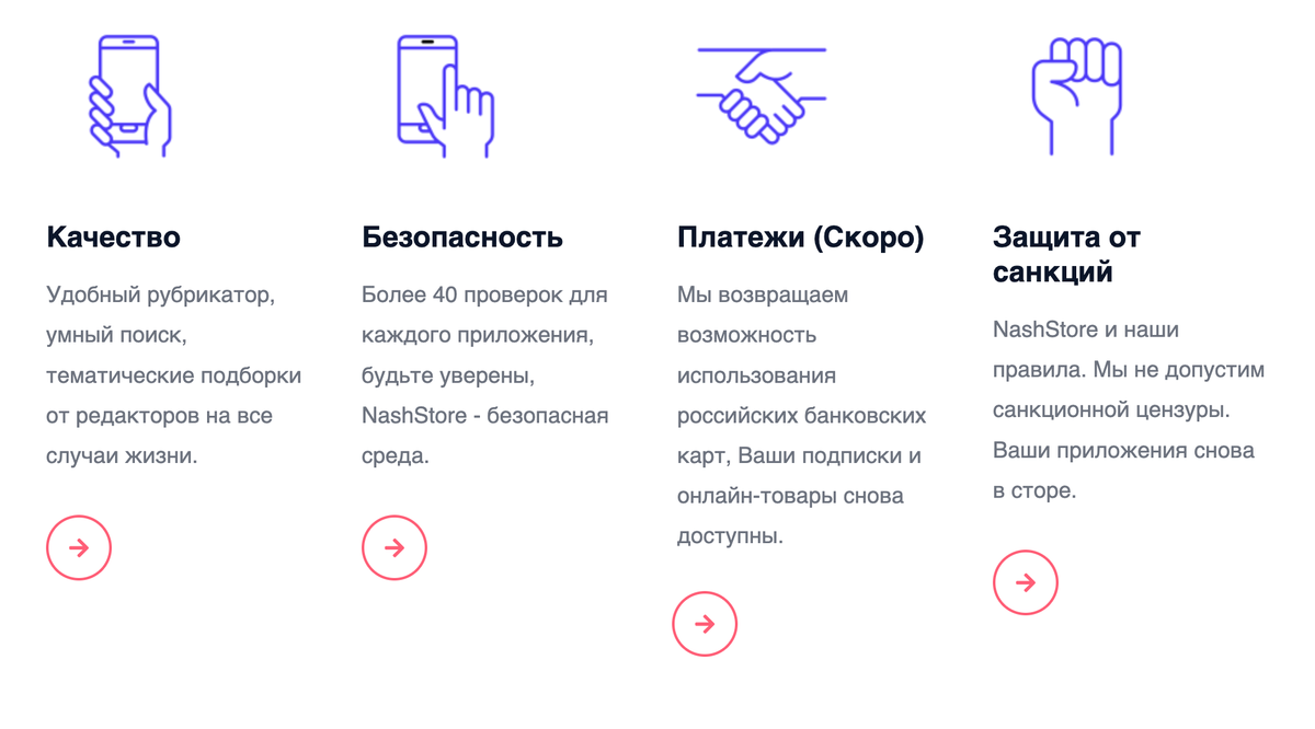 NashStore называет себя «альтернативным, независимым, санкционно-устойчивым магазином приложений». Санкциям на сайте стора в принципе уделено много внимания. В приоритетах платформы разработчики называют защиту от «санкционной цензуры» и возможность оплачивать подписки и внутриигровые покупки с помощью российских карт. Но платежей в NashStore на момент запуска нет — их хотят добавить позже.