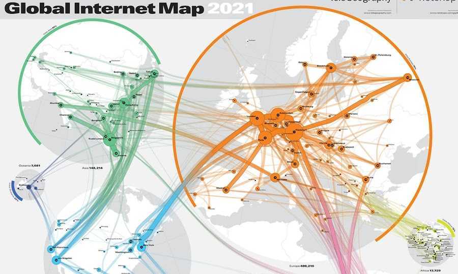 К концу 1990-х годов в США более 5 тыс. провайдеров сформировали сеть интернет-магистралей. В Европе тогда случались абсурдные ситуации: трафик между Германией и Францией мог идти через США.