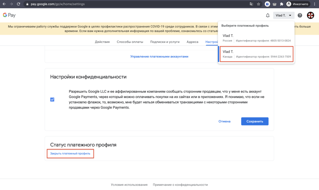 После проделанных манипуляций в вашем появится еще один платежный профиль. Если вы уверены, что этот профиль вам больше не понадобится, его можно удалить.