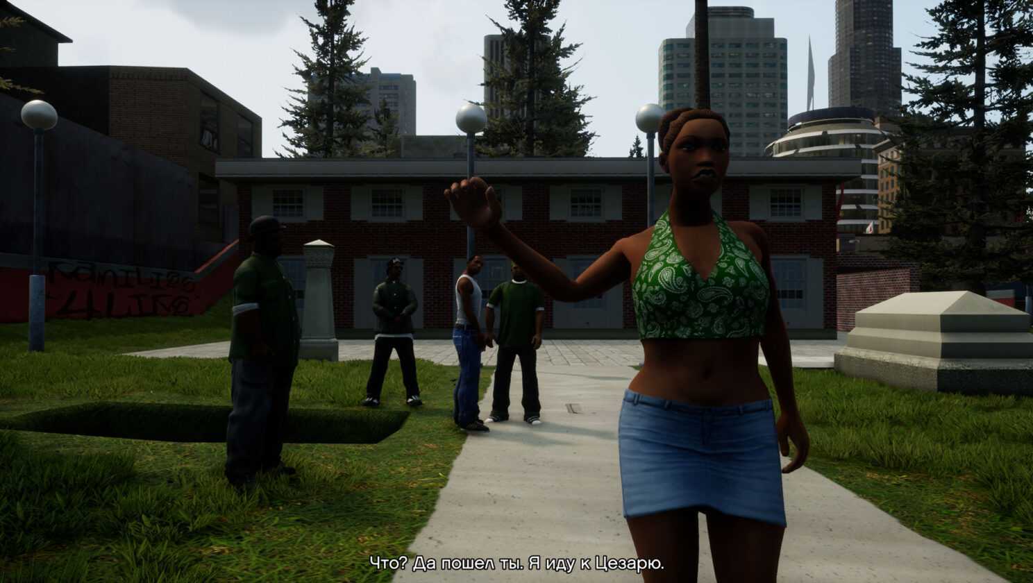 Отдельного внимания заслуживает проработка тел персонажей. У меня на первой же заставке появились сомнения, что в Grove Street Games знают о тестировщиках и отделе качества, но дальше увидел синтоловые руки-базуки Райдера. Вопросы сразу отпали.