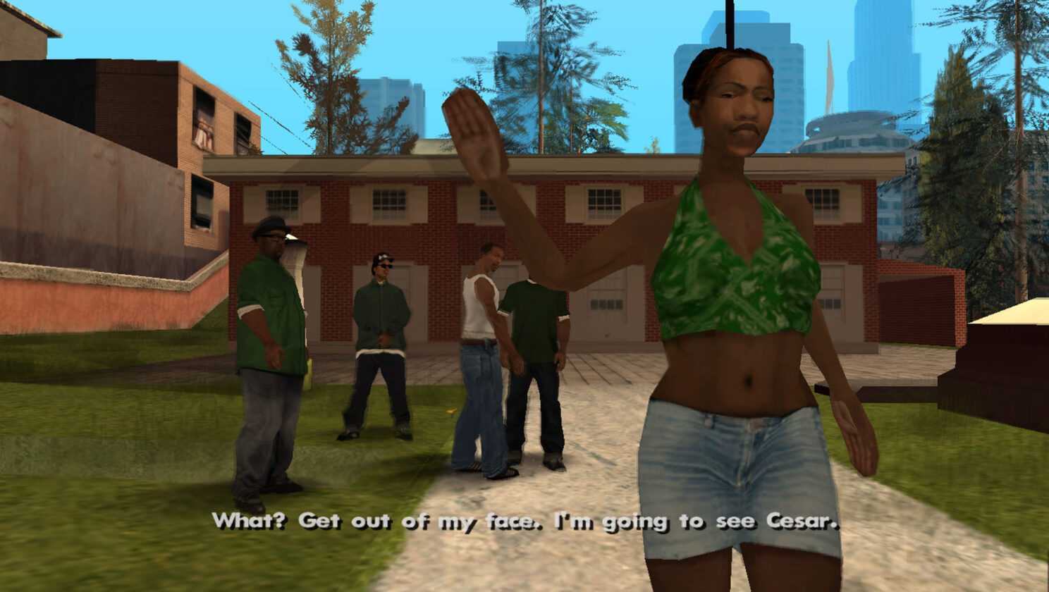 Не знаю почему, но в San Andreas помещения выглядят хуже, чем в Vice City, вышедшая на два года раньше. Одежда на людях нечеткая — будто ее вообще не пытались улучшить.