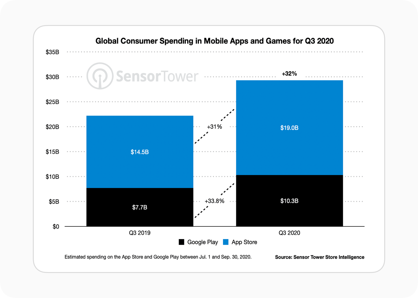 Но Android-пользователи приучаются платить за приложения. В 2019 они оставили в Google Play $7,7 млрд, а в 2020 эта сумма увеличилась на $2,6 млрд.