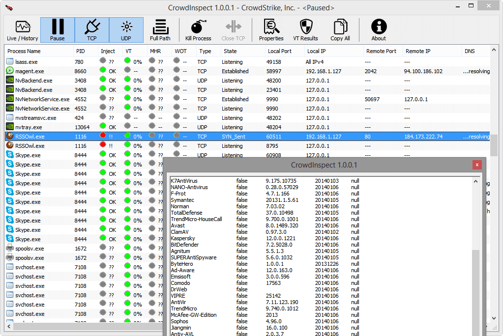 Если же вирус продолжит блокировать антивирусные сайты, придется решать проблему через Диспетчер задач, снимая с его помощью конфликтующий процесс, либо использовать вспомогательное ПО, вроде CrowdInspect, при условии, что он не будет блокироваться.