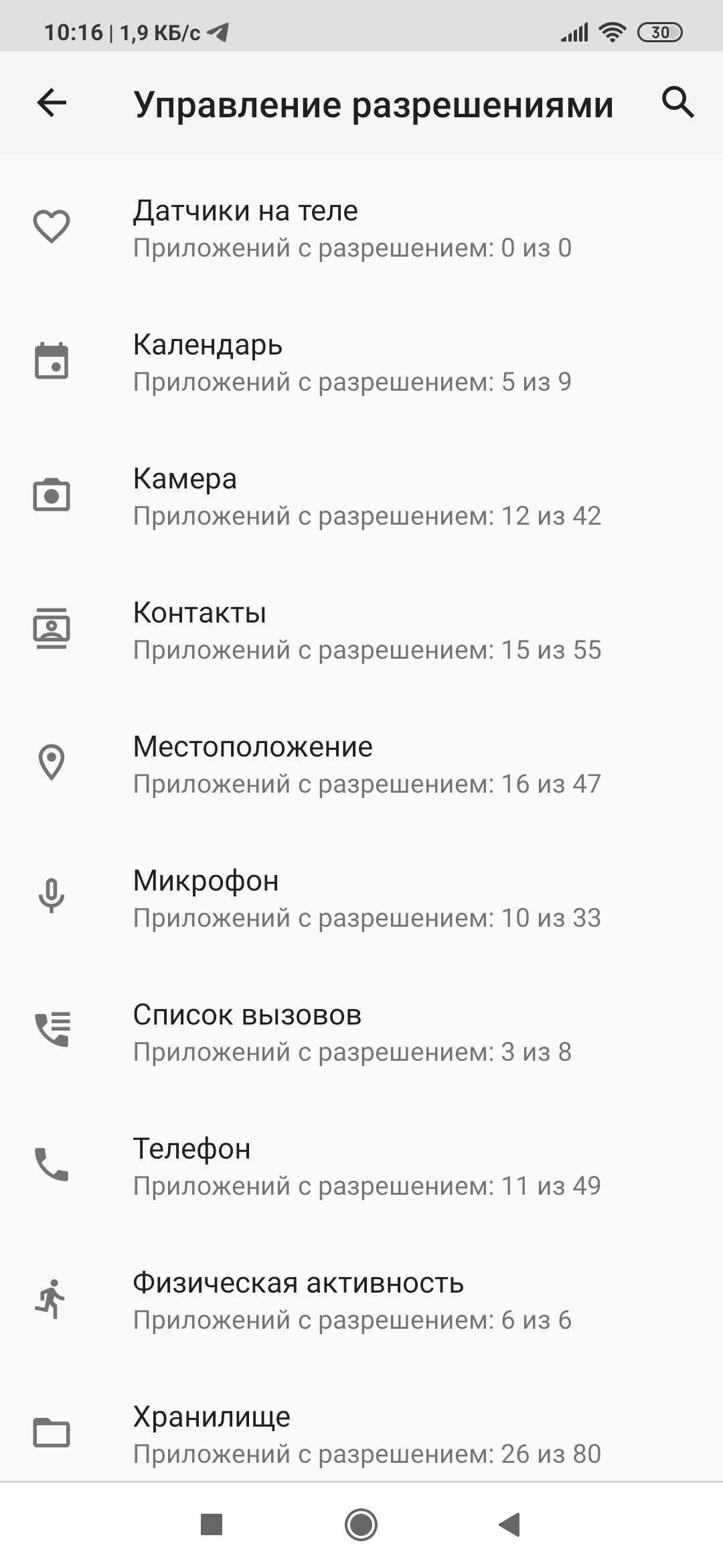 Открывайте приложение, если хотите изменить статус его разрешений по каждому отдельному компоненту: