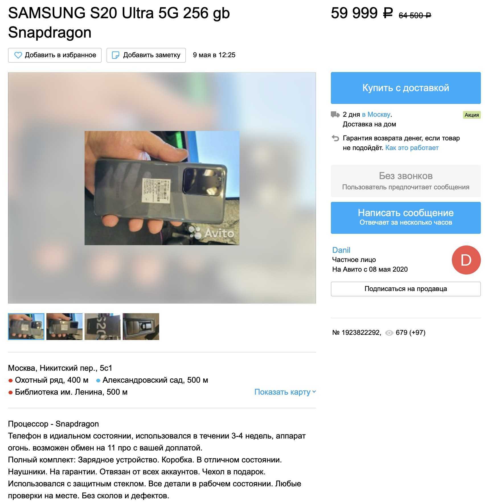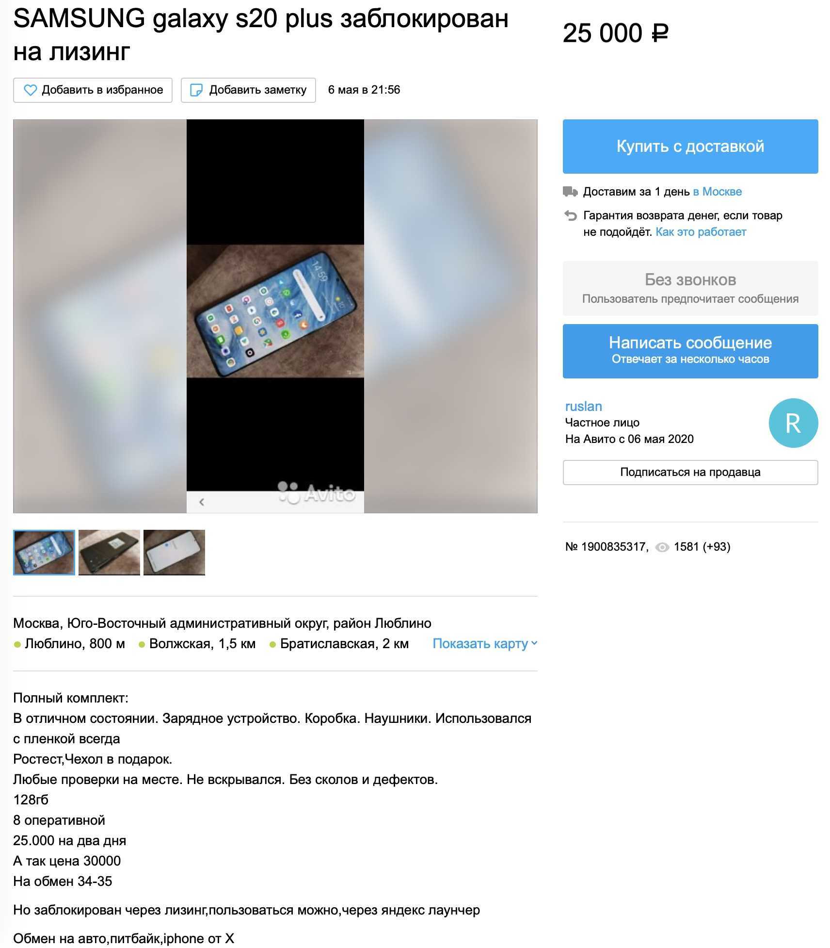 Сам факт перепродажи смартфона, вышедшего несколько месяцев назад, должен насторожить. Устройство можно сдать в течение 14 дней после покупки, зачем оставлять его себе и выставлять на «Авито», где водятся массы доставших покупателей и желающих поторговаться?
