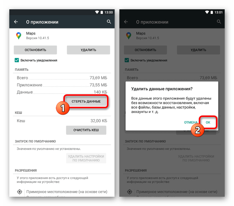 Чтобы выполнить очистку, подтвердите процедуру через всплывающее окно «Удалить данные приложения». По завершении ПО вернется в изначальное состояние, что также скорее всего исправит неправильное отображение карты.