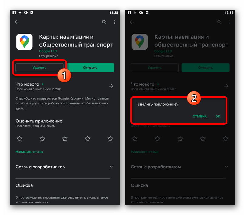 Несмотря на очистку данных о работе, иногда этот способ наоборот может вызывать ухудшение работоспособности ПО. В таком случае избавиться от проблемы можно, попросту удалив и заново установив Google Maps с официальной страницы по представленным в первом разделе ссылкам.