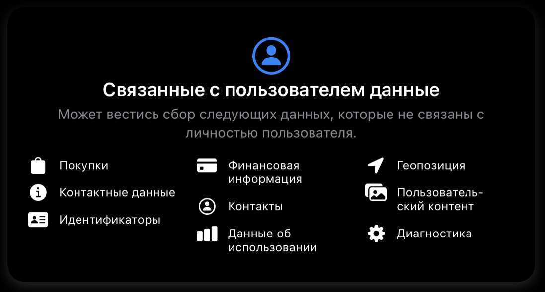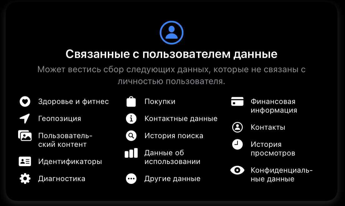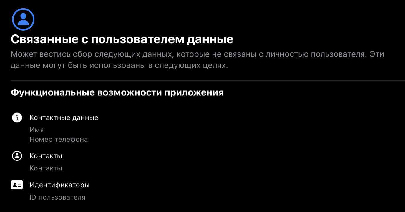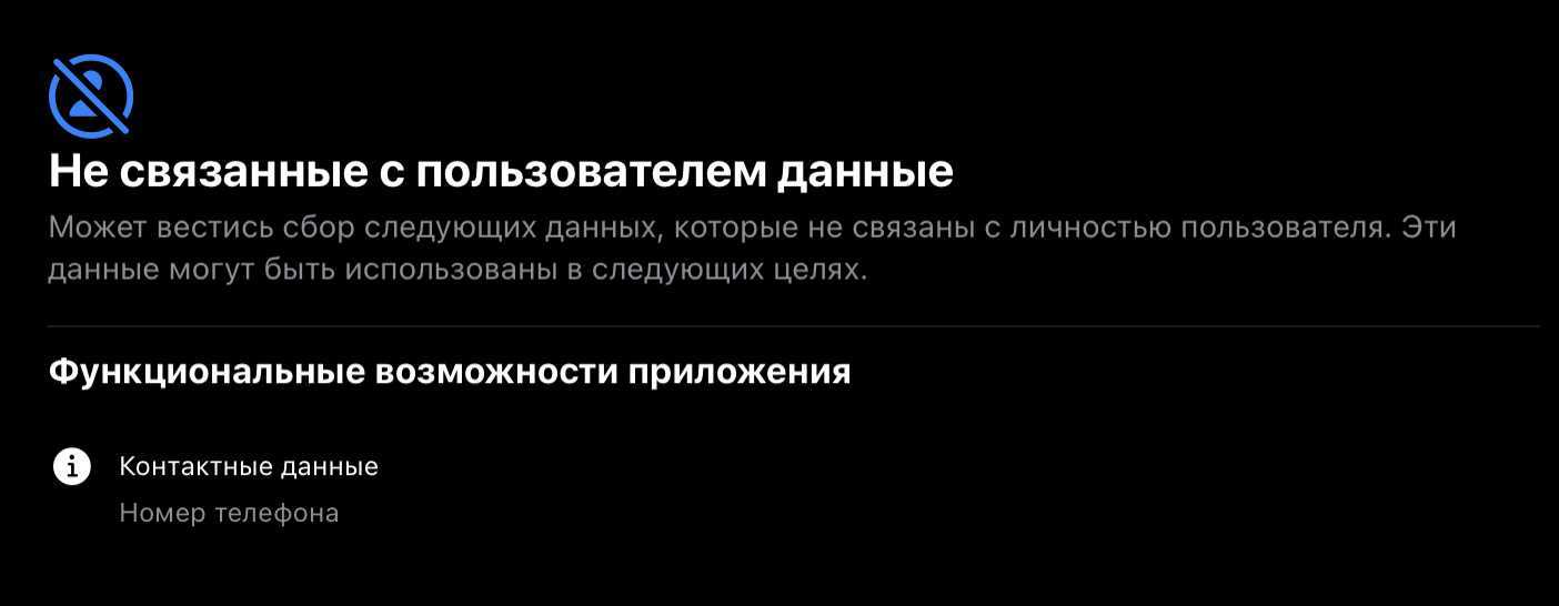 Ничего особенного: телефон, имя, контакты. Странно, что нет даже геопозиции! Если это не ошибка, Telegram – молодцы. Хотя IP-адреса входов они точно сохраняют, и странно, что об этом в блоке Конфиденциальность нет ни слова.