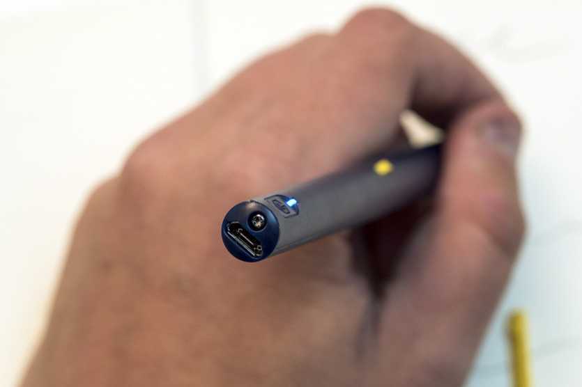 В остальном – гаджет удобно лежит в руке, пишет на бумаге черной пастой и весит всего 21 грамм, потому что корпус сделали лёгким, пластиковым.