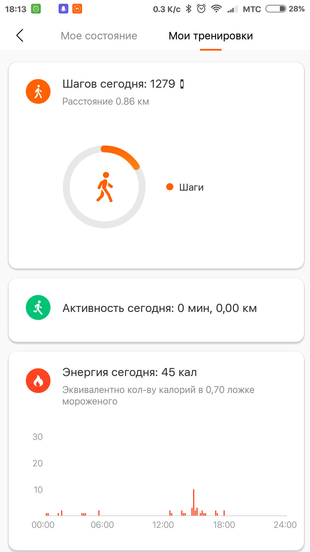 Также браслет умеет фиксировать показания сна, но из-за лёгкости пробуждения подсветки при движениях руки, я не смог спать с ним.