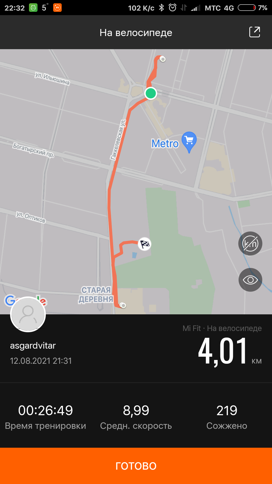 Также есть отдельный режим тренировок с построением трека, которые запускаются из приложения. Для этого используется GPS передатчик подключенного смартфона. Работает это достаточно точно, передвижение фиксируется корректно. При включенной тренировке дисплей браслета остаётся активным и на нём включается таймер с кнопками паузы и остановки.