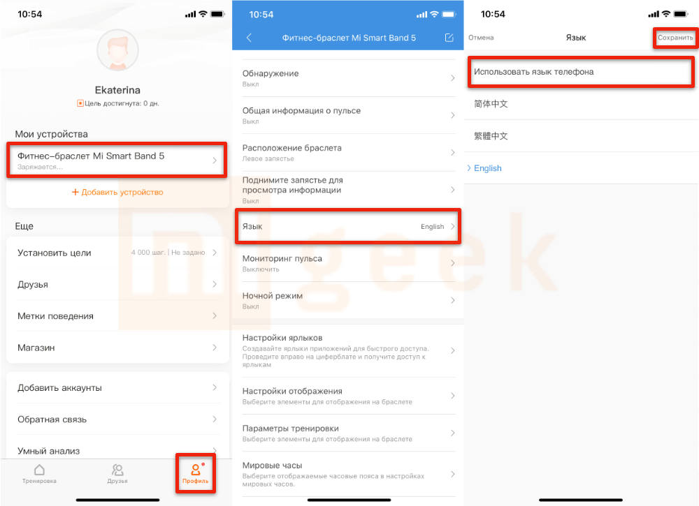 После данных действий у вас должен включиться русский язык на Mi Band 5 китайской версии (CN).