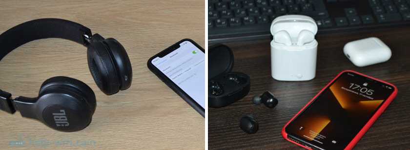 Речь идет о разных форматах наушников, подключаются как обычные (на фото слева), так и TWS, когда два наушника раздельные и соединяются между собой по Bluetooth (на фото справа).