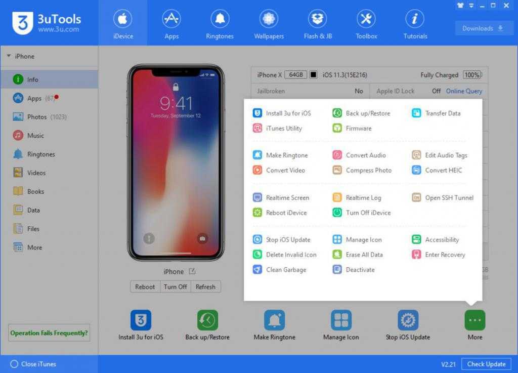 Программа имеет все те же функции, что и предыдущий вариант аналога iTunes. Но помимо этого позволяет прекратить обновление операционной системы. Особенно функция полезна для тех, кто устал от постоянных уведомлений от смартфона.
