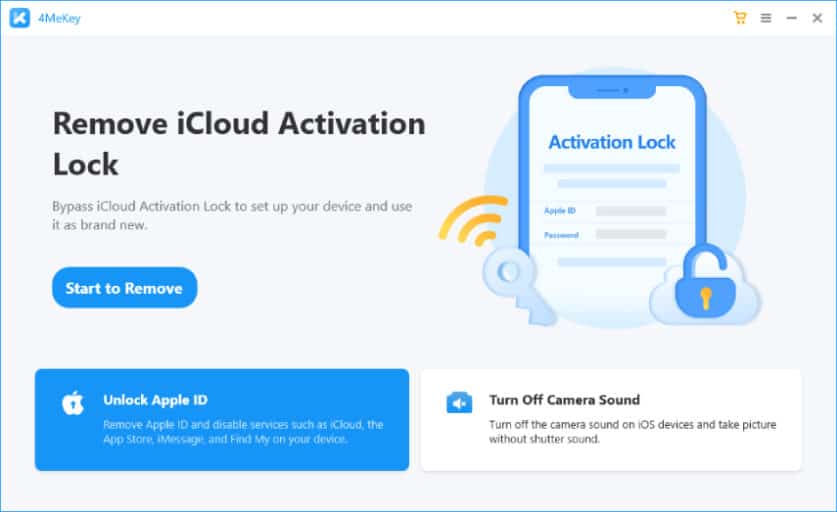 4MeKey разработан с множеством функций и очень умным алгоритмом для разблокировки замков iCloud. Он не хочет, чтобы вы знали кодирование или программирование. Вместо этого он может разблокировать указанные учетные записи iCloud всего за пару кликов. После обхода данной учетной записи iCloud вы можете легко войти в связанное устройство и использовать его в обычном режиме.