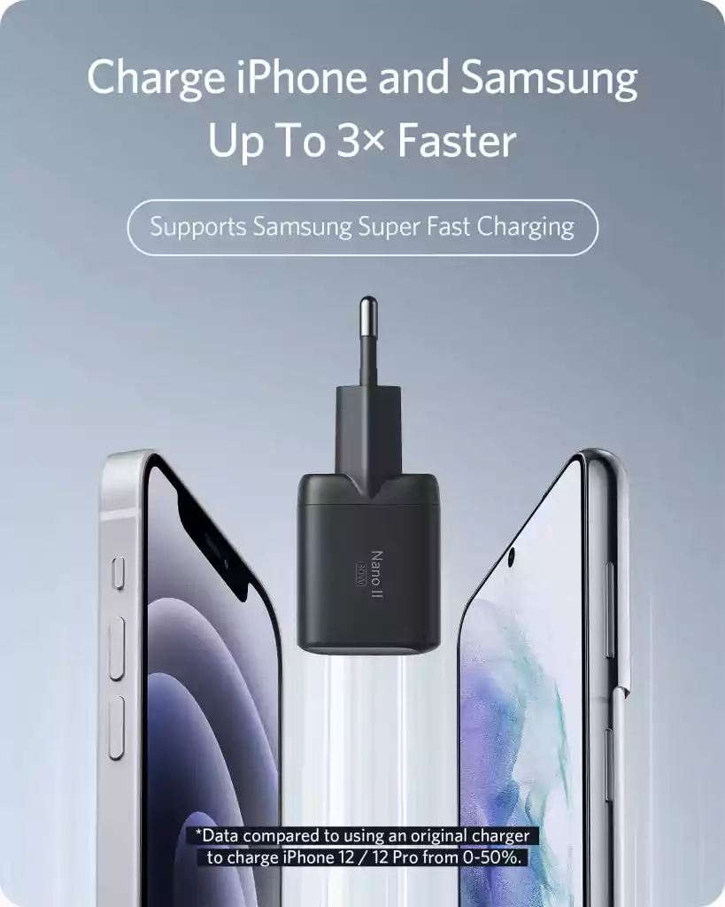 Anker — надежный производитель, и его адаптер Nano II идеально соответствует требуемым характеристикам USB PD PPS и 30 Вт для быстрой зарядки телефона. При цене 2 000 рублей что дороже, чем у Ugreen, но является более компактным спутником в путешествиях. Anker также предлагает модели мощностью 45 Вт и 65 Вт, если вам понадобится зарядить планшет или ноутбук.