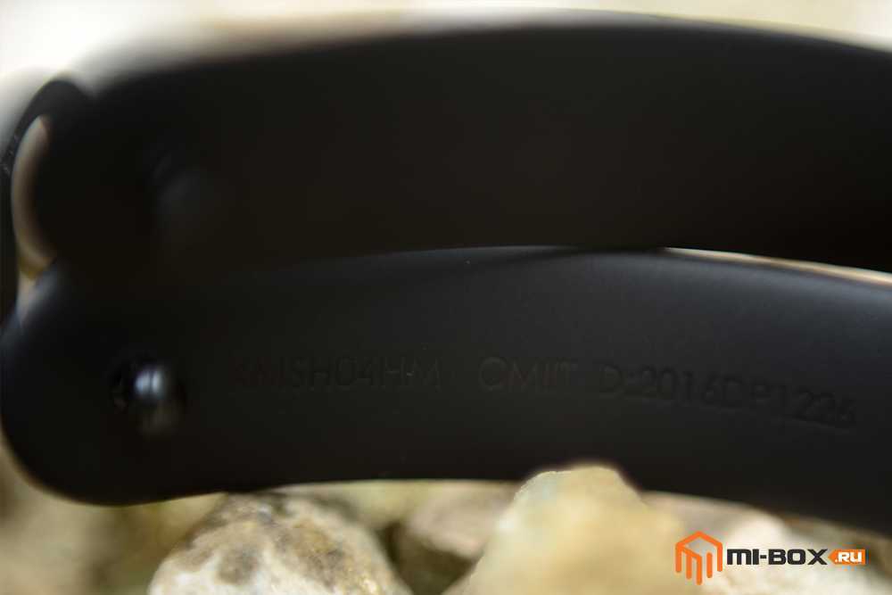 На внутренней стороне оригинального браслета присутствует маркировка xmsh04hm, которая обозначает принадлежность аксессуара к фитнес-трекеру Mi Band 2.