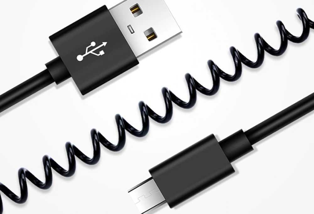 Кабель-пружина — лучший вариант для тех, кто часто заряжает или синхронизирует смартфон на разных расстояниях от розетки, павер банка или компьютера. Скручивать туда-сюда этот кабели нет необходимости. Он растягивается на нужную длину и потом обратно принимает форму пружинки.