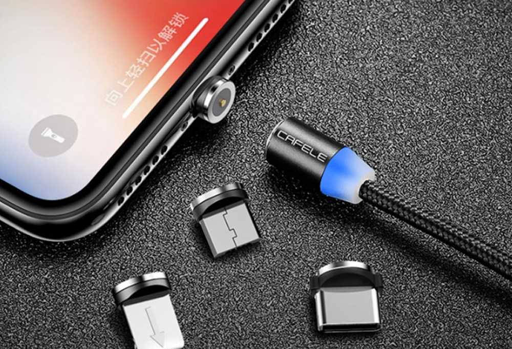 5. Кабели со съёмными головками — удобные кабели для зарядки с красивой подсветкой, делающее подключение более безопасным — если вы забылись и случайно резко дёрнули телефон, то вместо того, чтобы сломать гнездо телефона или розетку, произойдёт отсоединение магнитной головки. Такие кабели обычно являются кабелями только для зарядки!