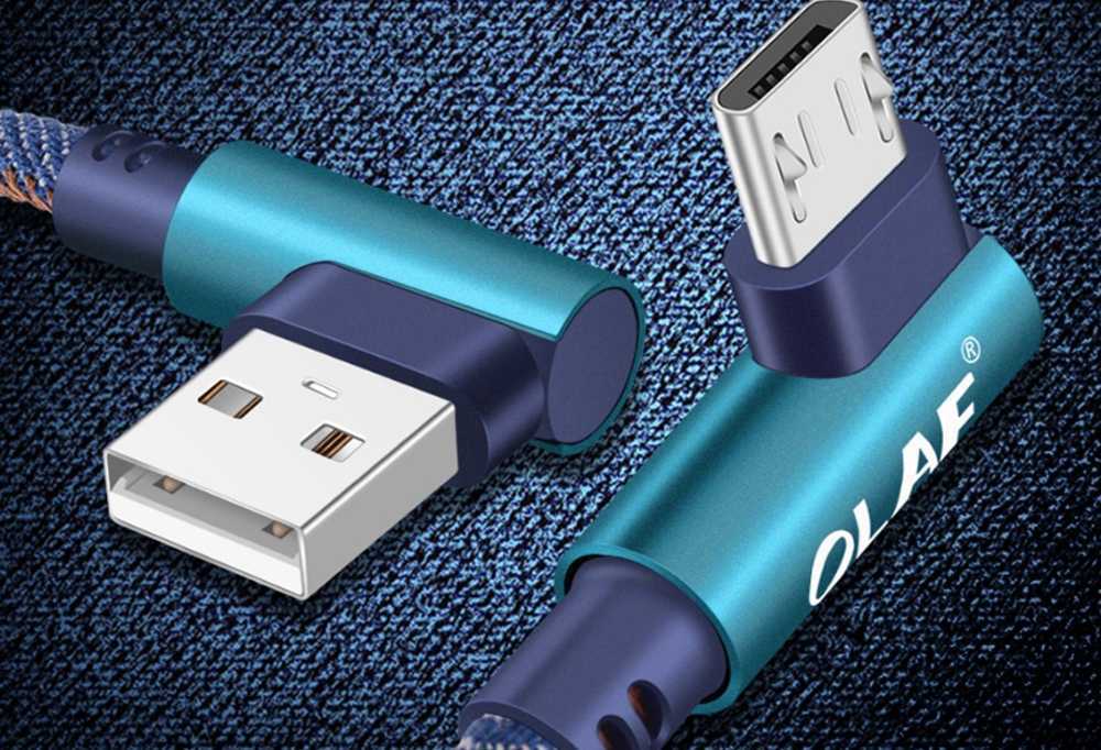 Недорогой кабель с двойным угловым коннектором и поддержкой быстрой зарядки от Olaf. Особенностью кабеля является возможность выдерживать до 50 килограмм. Отзыв: «Провод хороший, буду заказывать ещё. Поддерживается быстрая зарядка, что радует за такие деньги.»