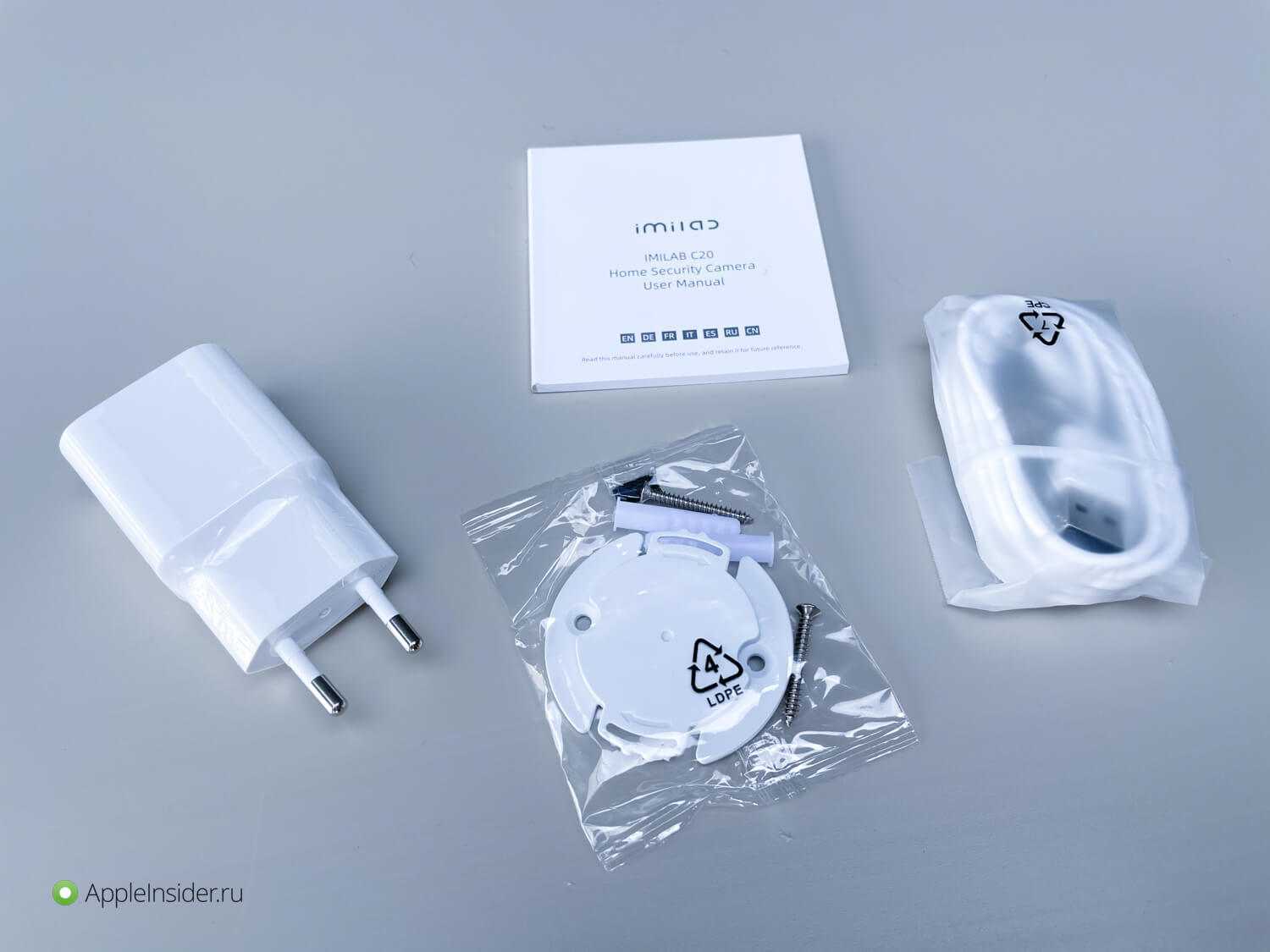 В комплекте, кстати, сразу шла правильная «вилка» и комплект крепежа для установки камеры на стену или потолок. Удобно.