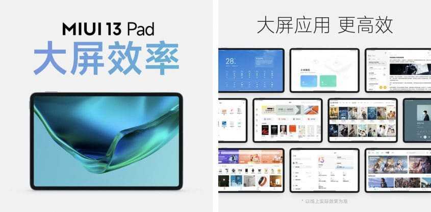 На презентации 28 декабря 2011 года Xiaomi также представила версию MIUI 13 Pad — это оптимизированная версия оболочки Android для устройств с большим экраном.