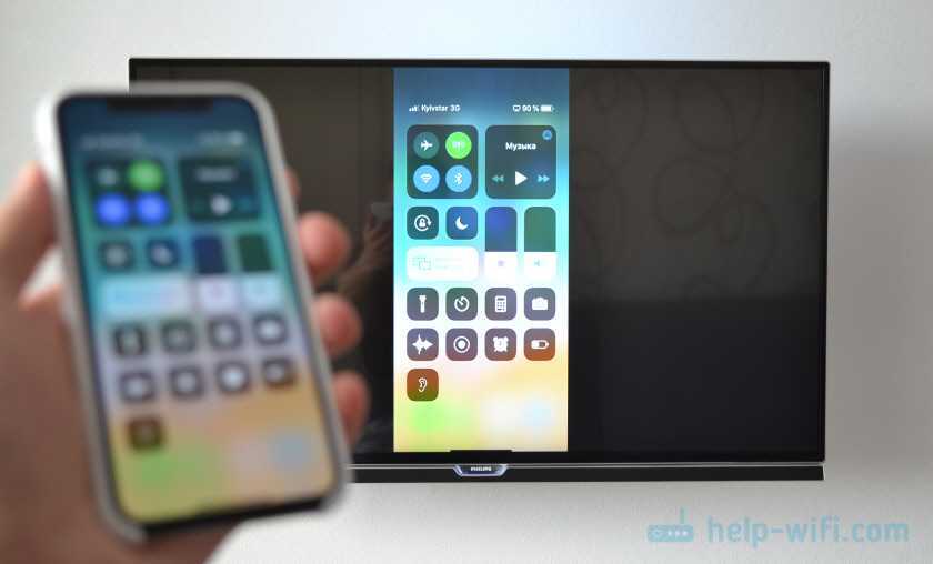 Далее подключаемся к той же Wi-Fi сети на iPhone и транслируем экран своего телефона на ТВ. Здесь все гораздо проще: